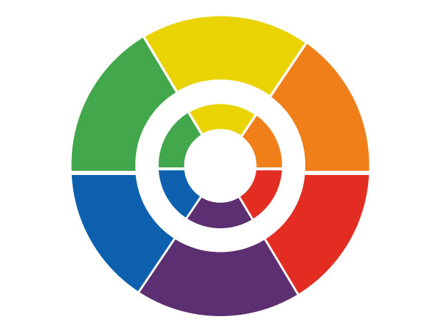 Stoのカラーバリエーションは900色とかなり豊富です。黄・オレンジ・赤・紫・青・緑の6つのパートを基調とし、24のベーシックトーンがカラーホイールを構成しています